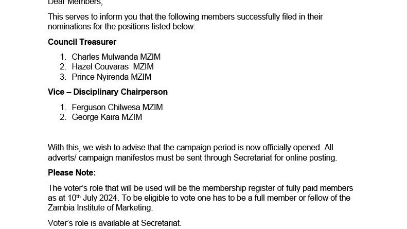 Read MoreGreetings {subtag:name}, Warm greetings from the Zambia Institute of Marketing (ZIM) and the African Marketing Confederation (AMC). ZIM is a